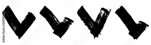 Set of check mark icons in grunge style black on white background
