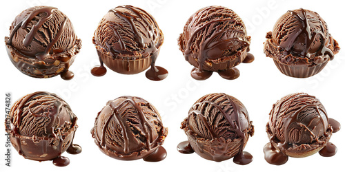 Set of Chocolate Peanut Butter Ice Cream isolated on transparent png background. Generative ai