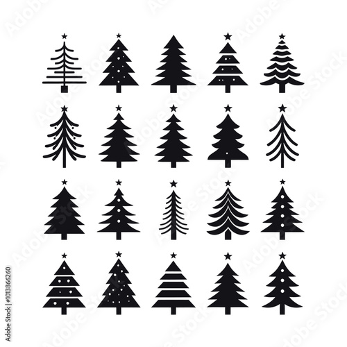 set of Christmas tree silhouette