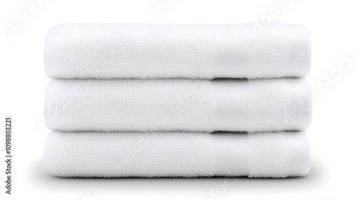 Set of Clean White Towels Neatly Folded on White Background