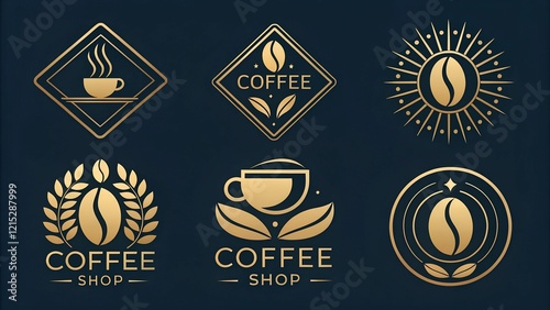 Set of coffee shop gold logo design collection with modern emblem shape Premium vector