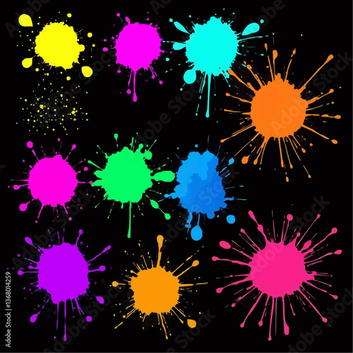 Set of Colorful Paint Splashes, splotch, ink blot, smudge, stain, spot