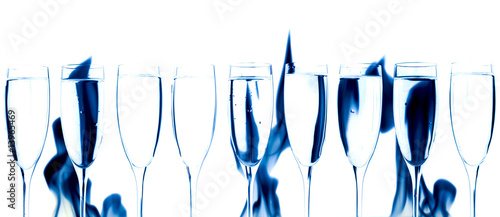 Set of crystal glasses and blue smoke