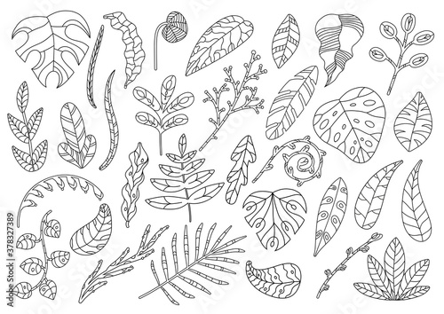 Set of decorative leaves and floral elements. A collection of hand-drawn twigs and leaves. Vector illustration