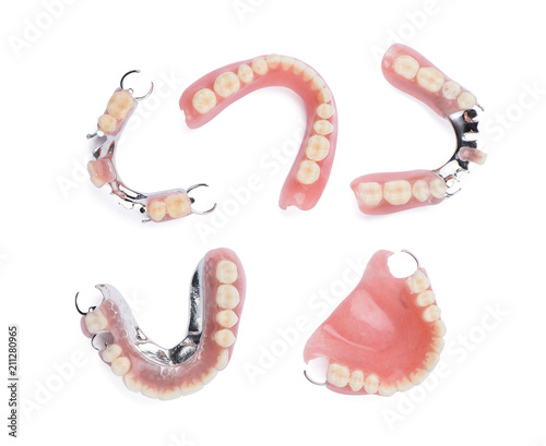 Set of dentures on white background