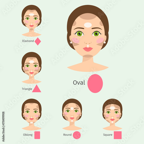 Set of different woman face types vector illustration character shapes girl makeup beautiful female