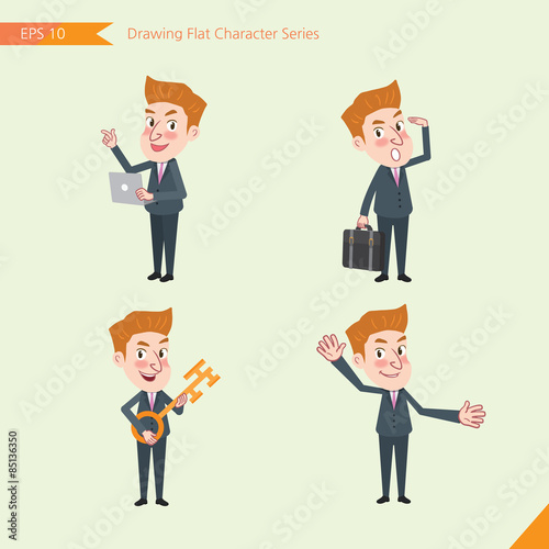 Set of drawing flat character style, business concept young office worker activities - introducing, greeting, masterkey, global business