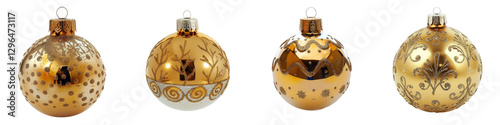 Set of Elegant Golden Christmas Ornaments with Decorative Patterns for Holiday and Winter Festivities