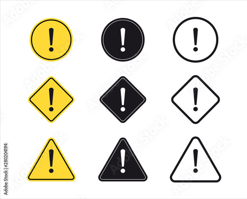 Set of Exclamation mark symbol. Attention Sign. Danger sign, warning sign. Hazard warning symbol.