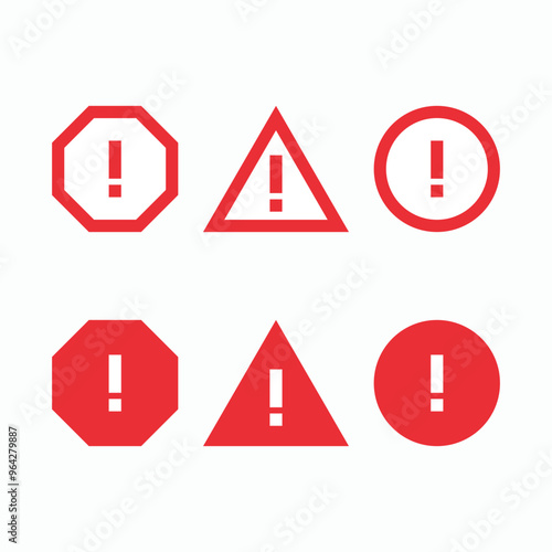Set of exclamation mark warning icons. Vector illustration
