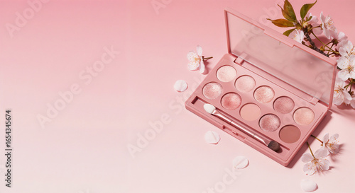 set of eye shadows on a delicate background with flowers . Generative AI