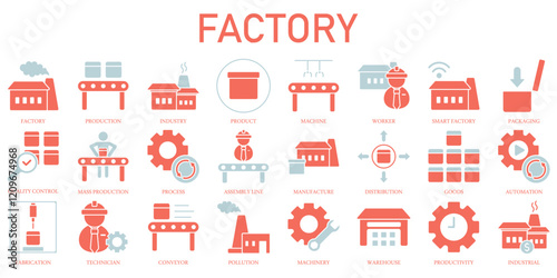 Set of Factory Icons or symbols Vector fully editable file