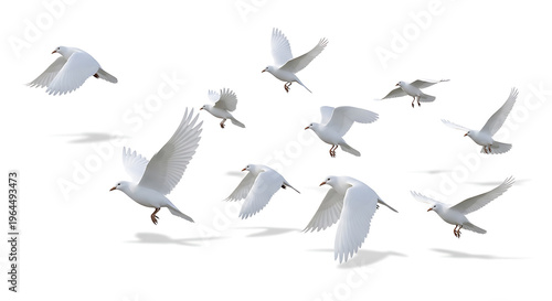 Set of flying gulls with translucent wings isolated on white