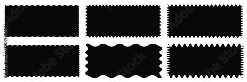 Set of frames with zigzag edge, scallop edge shape. Set of jagged ellipses elements. Rectangle shape frame with zigzag edge. Rectangular jagged curved ...