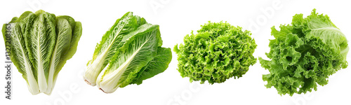 Set of fresh lettuce bunch isolated on transparent background