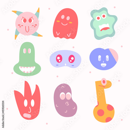 Set of funny cartoon monsters doodles. Various cute and funny expressions. Soft and colorful simple illustration design.