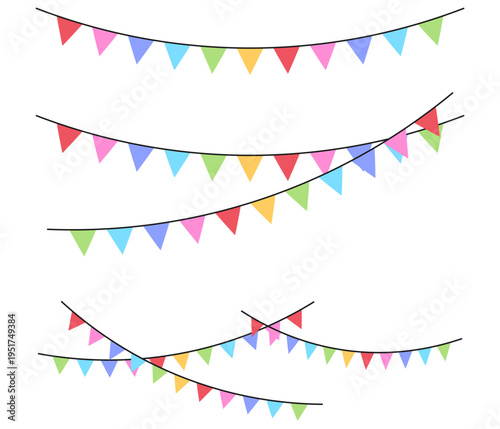 set of garland bunting flag holiday decoration card poster clipart illustration