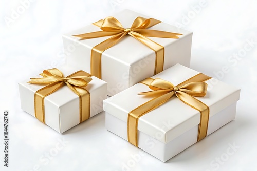 Set of gift boxes with ribbon isolated on white