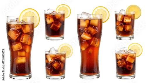 Set of Glass of cola with ice and lemon isolated on png