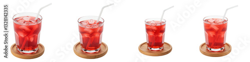 Set of Glass of Red Nectar with Ice and Straw on Coaster