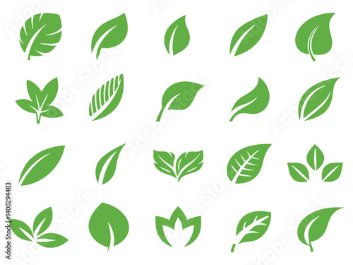 Set of Green Leaf Icons – Minimalistic Nature-Inspired Vector Illustrations.