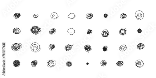 Set of hand drawn doodle circles in a grunge style. Scribble doodle circle and point. Collection black shapes dots and drops. Vector illustration for bullet journal. Isolated white background.
