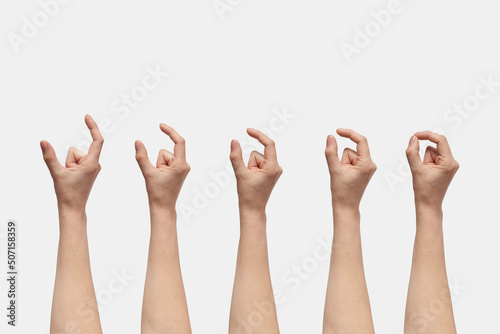 Set of hands with measuring symbols isolated on white.