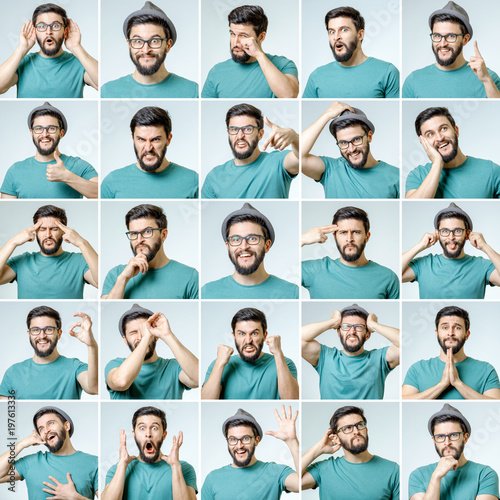 Set of handsome emotional man