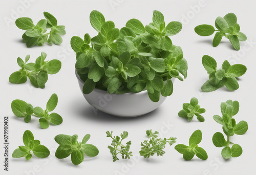 Set of healthy herbs elements Fresh marjoram isolated on transparent background