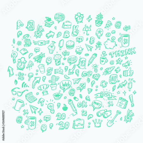 Set of icons on the theme of business and finance. Vector. Web icons in doodle style. All elements are isolated on a white background. Fashionable style.