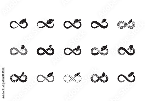 Set of infinity symbols with feathers for eternity freedom and infinite possibilities vector design concept ideal for logos and branding
