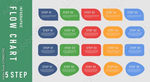 Set of Infographics Elements Flat Design Process arrow box Step by step vector set. Five steps.