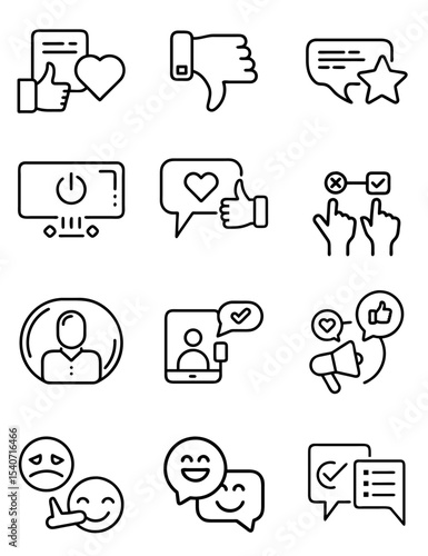 Set of interaction and feedback icons illustrating user engagement and social reactions