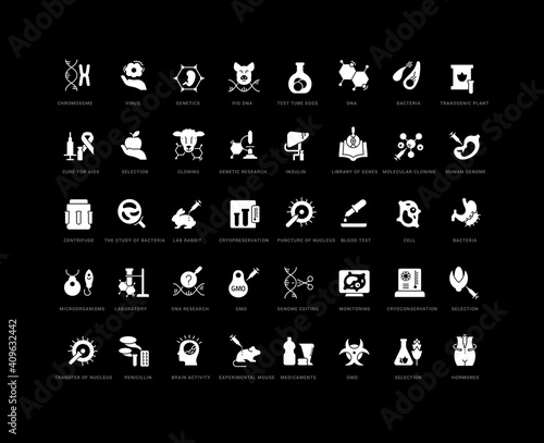 Set of linear icons of Genetic Engineering