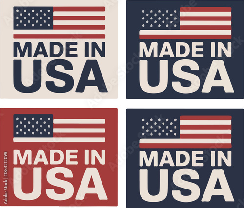 Set of "Made in USA" Product Labels - Premium Quality American Flag Badges for Manufacturing and Product Branding
