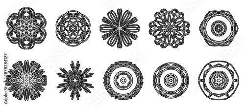 Set of Mandala. Chakra. Kaleidoscope Vector Silhouette. Decoration Design