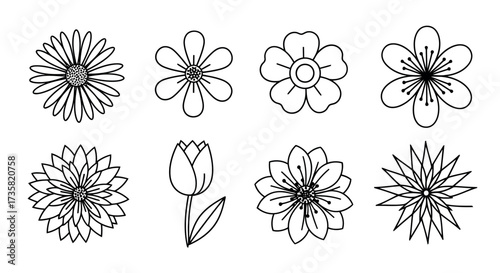 Set of minimalist flower icons simple line art vector design isolated on white background