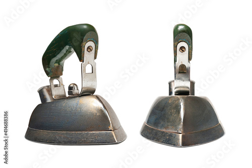 Set of old iron. Old electric iron for ironing. Old household appliances. Isolated on white background.