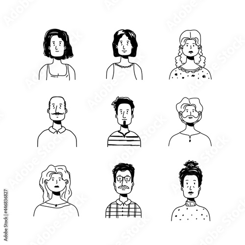 Set of outline cartoon character avatar design isolated
