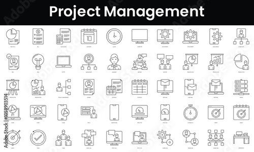 Set of outline project management icons. Minimalist thin linear web icon set. vector illustration.