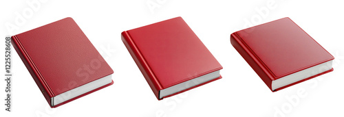 Set of Photo album with red leather cover isolated on transparent or white background