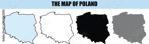 Set of Poland Maps Silhouette Outline Fill Pixelated