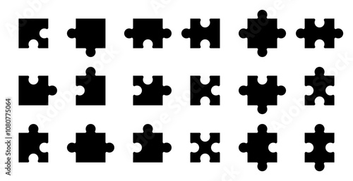 Set of puzzle pieces. Jigsaw puzzle with pieces. Flat style