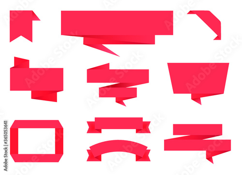 Set of red origami paper banners