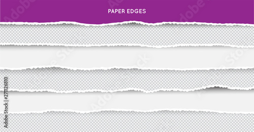 Set of Ripped and Torn Paper Stripes. Texture of Paper with Damaged Edge Isolated on Transparent background. Vector illustration.