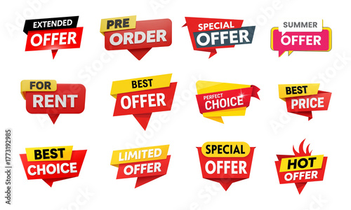 Set of sale offer labels isolated on transparent background