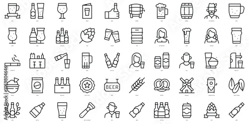 Set of simple outline beer Icons. Thin line art icons pack. Vector illustration