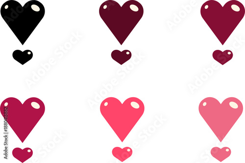 Set of six exclamation mark icons with Valentine’s Day theme. Romantic love symbols ideal for greeting cards, social media posts, stickers, and festive designs.