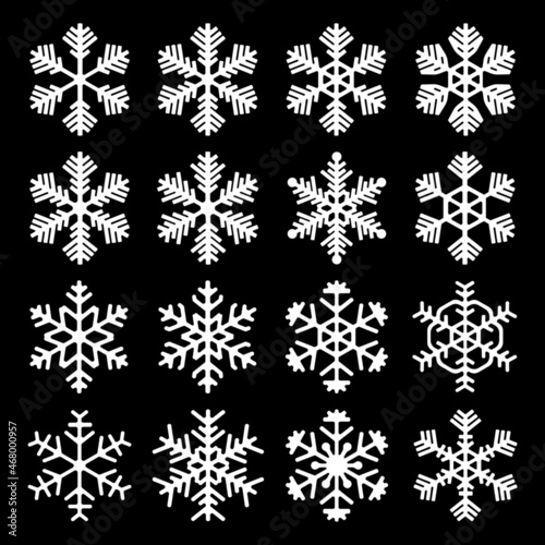 Set of snowflake icons. Beautiful snowflakes of different artistic shapes. Vector Illustration