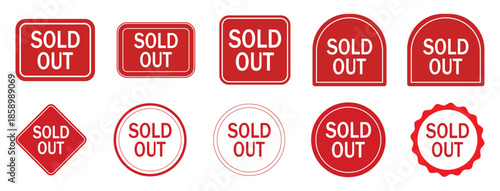 Set of sold out badge stamp in red. retail promotion, shop marketing elements, transparent background for commercial discount event. vector illustration.